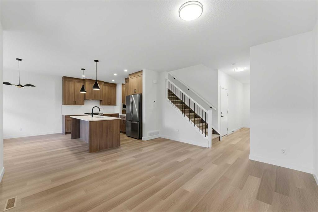 Welcome to luxury and convenience built by Vesta Properties - in the heart of Airdrie’s award-winning community of Cooper’s Crossing. This brand-new beautifully crafted interior-unit townhome combines everyday comfort with smart design. Step inside to discover a bright, functional main level that includes a stylish gourmet kitchen with an oversized island and stainless steel appliances, a cozy family room. Upstairs, a sun-soaked bonus room offers the perfect space to unwind, work from home, or enjoy family ...