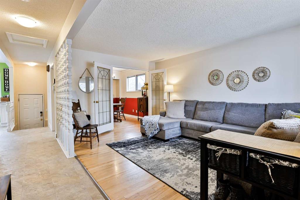If you've been waiting and waiting patiently for your perfect first home, here she is! This bungalow is not only adorable, it is comfortable and move-in ready! Your spacious living room and dining room boast hardwood floors and French doors between. Down the hall is a super-functional u-shaped kitchen with a bay window facing onto the backyard. Along the hall is a bright, renovated 4-piece bath with extra built-in storage. And back to the front of the house is the primary bedroom. Downstairs is finished and...