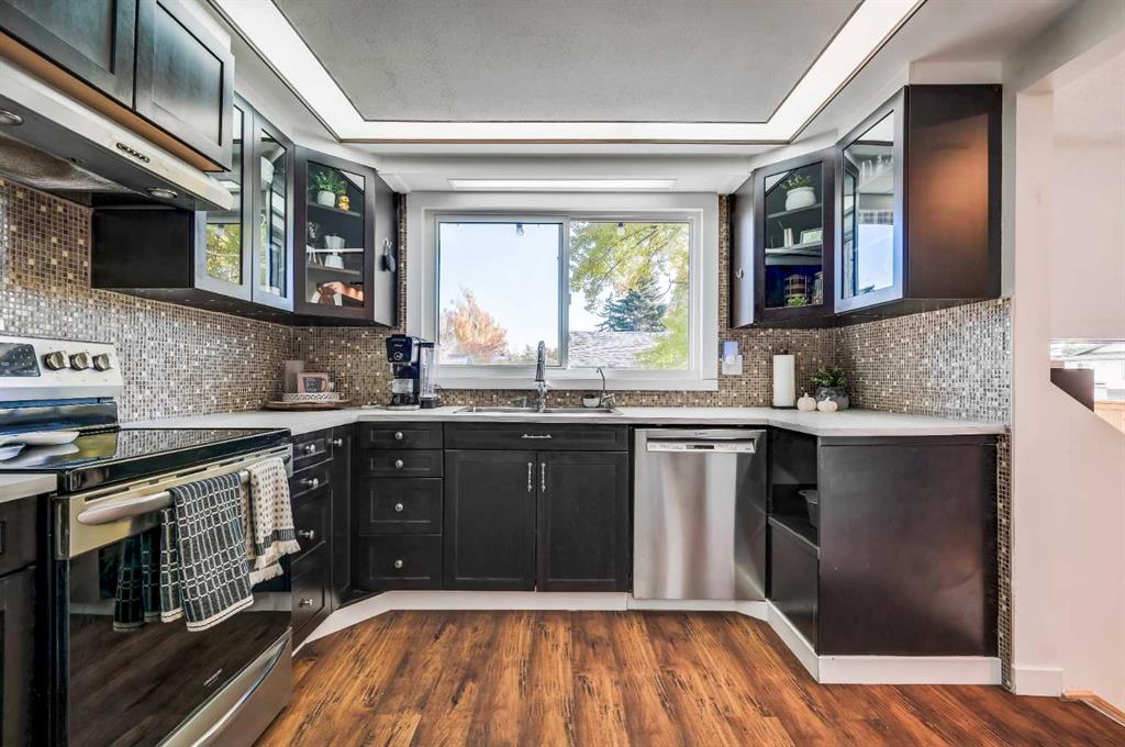 Welcome to this bright and sunny bungalow on an OVERSIZED PRIVATE BACKYARD/CORNER LOT on a tree lined street in Queensland - close to Schools, Shopping, Public Transit, Playgrounds and Parks.This home has been well cared for over the years, including a new roof (2013), attic & wall insulation (2016), windows/ siding/ doors (2016), garage door & opener (2013), hot water tank (2025), fridge (2019), stove (2021), and dishwasher (2021). The spacious 1200 sq ft main level features an updated kitchen with counter...