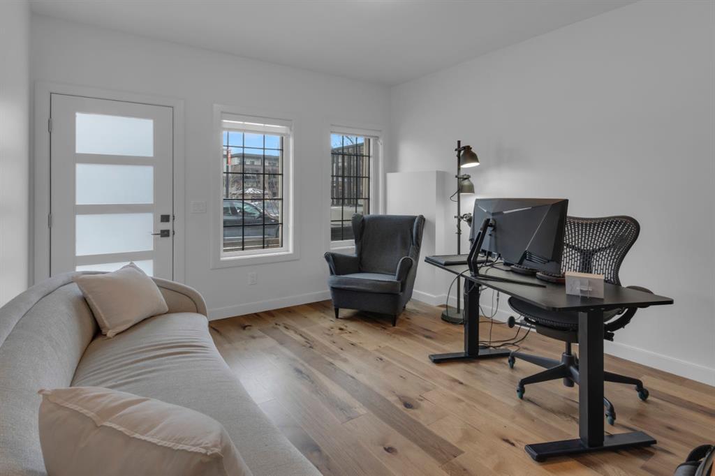 Timeless design and modern comfort come together in this beautifully finished 1,719 sq.ft. three-storey townhouse, showcasing a striking New York–inspired exterior and a thoughtfully designed interior. The lower level boasts the highly sought after double-wide attached garage option and a bright, versatile space ideal for a family room, home office, or flex area. Large windows fill the space with natural light, and engineered hardwood flooring extends throughout all three levels, creating a cohesive and ref...