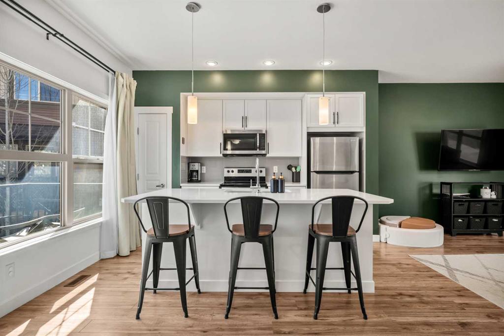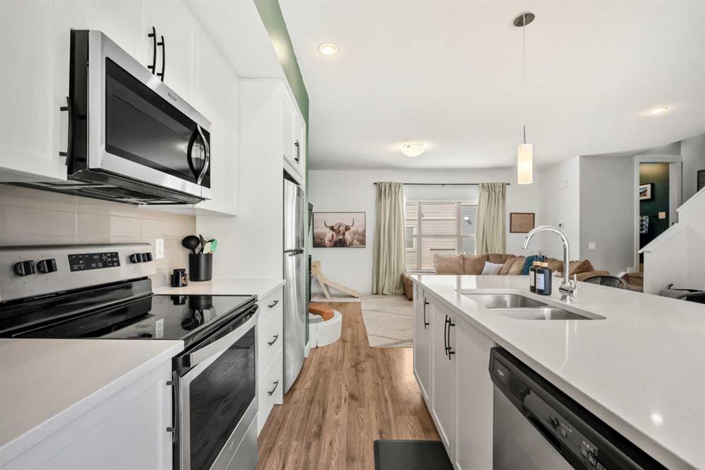 ***OPEN HOUSE, THIS SUNDAY, APRIL 12th, FROM 1-3 PM*** Beautifully cared for end-unit townhome offering 3 bedrooms, 2.5 bathrooms, and a double attached garage in the sought-after community of Heartland. This bright and inviting home features an open concept main floor with expansive windows that flood the living, dining, and kitchen areas with natural light. The modern kitchen is equipped with stainless steel appliances, quartz countertops, a spacious eat-up island and durable laminate flooring throughout ...