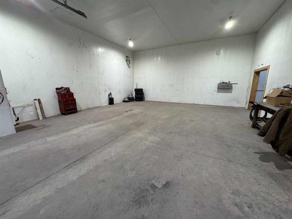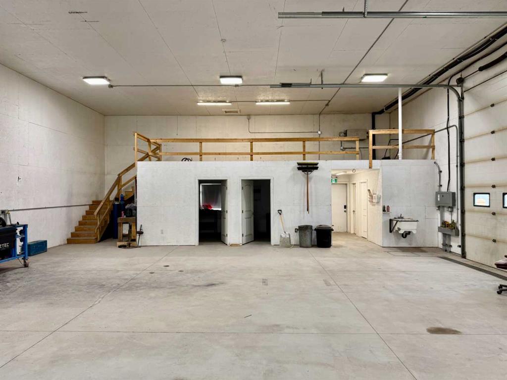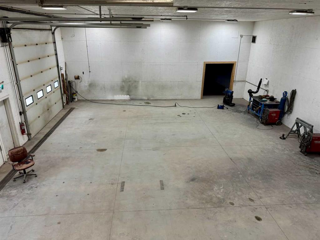 Versatile shop that gives you options for your business! Solidly built with in-floor heating, the building is 3600 sqft and features two 14' x14' roller doors and one 12' x 14' roller door. The whole space is connected but it's set up with a dividing wall if you want to rent out one of the bays separately for extra income. The larger side is 38' x 56' and has 2 offices and a bathroom along with a mezzanine for extra storage. The other side is 38' x 31' also has a bathroom. The 1 acre lot is securely f...