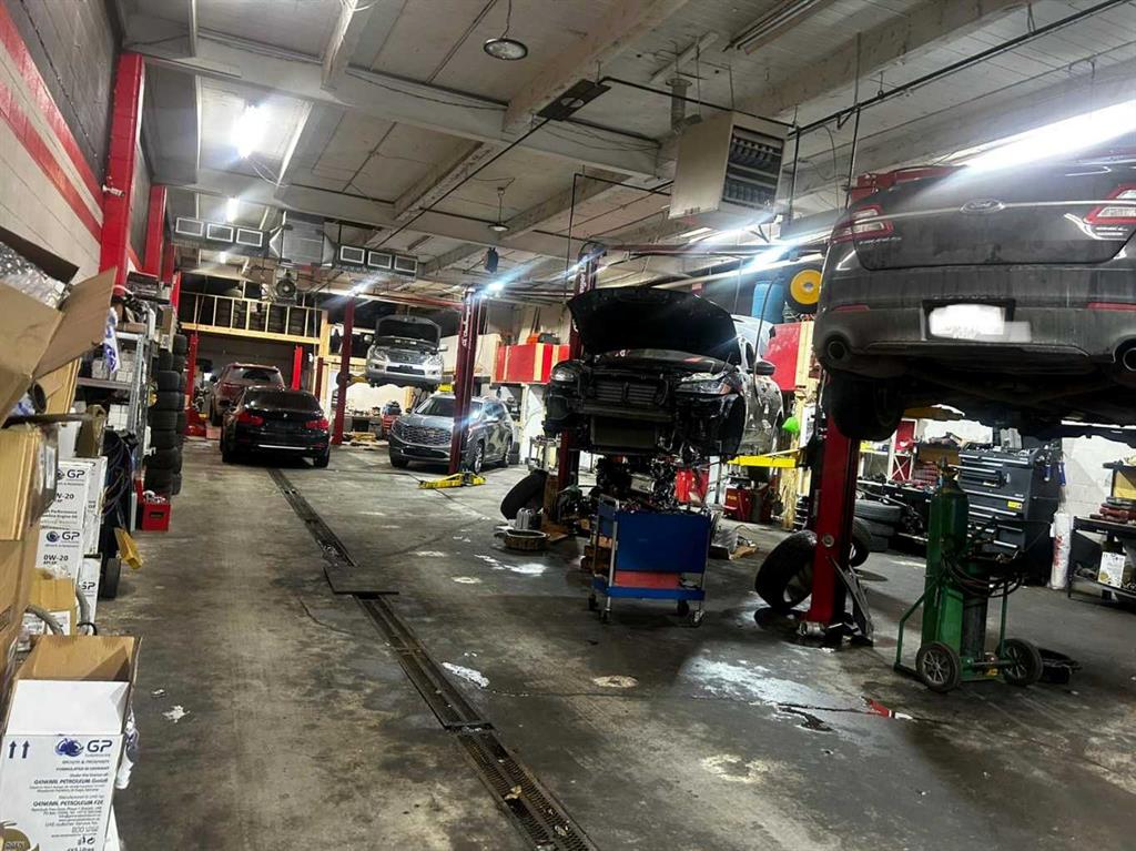 A fantastic and rare opportunity to on your own bay and run a business that is set up and ready to go. Overhead door, lots of parking, reception area, and upper mezzanine for storage, lunch room or private office. Current business name not included. 4 Hoists 2 Post 10000 LBS ( 2 Challenger And 2 Forward ),1 Hoist 2 Post 12000 LBS ( Forward ),1 Hoist 4 Post 14000 LBS ( Alignment ) ( Rotary ),Tire Changer Machine ( Corghi ),Tire Balancer ( Corghi ), Air Compressor ( DV ), Makeup Air Unit ( 5500 CFM ), 3 Air H...