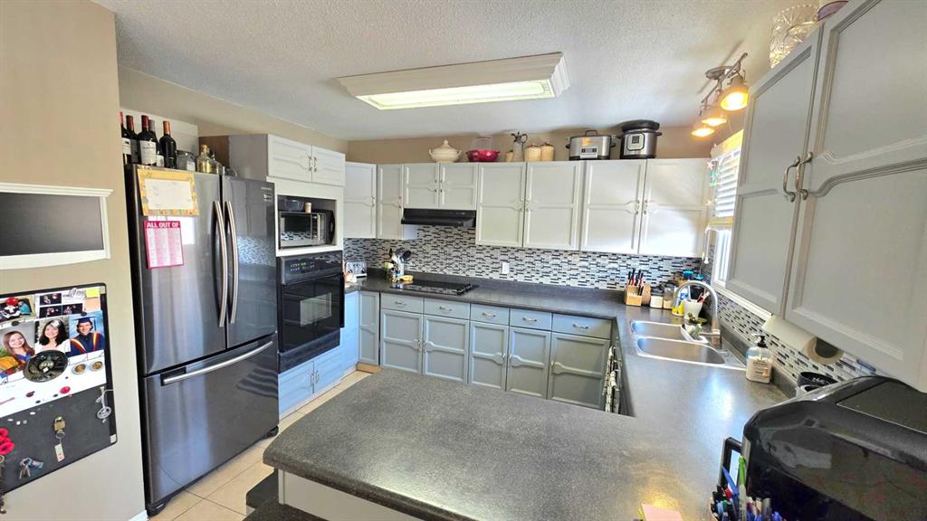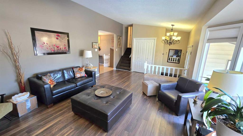 Spacious 4-level split backing onto peaceful green space. Fully developed on every level: 3 bedrooms including a master suite; main floor with bright living room, dining area and kitchen; third level featuring a cozy family room with wood-burning fireplace, a fourth bedroom, full bath and garage access; lower level with a large rec room, laundry and ample storage. Laminate flooring in two upstairs bedrooms, hallway and stairs. Perfect for families seeking extra living space and backyard privacy.