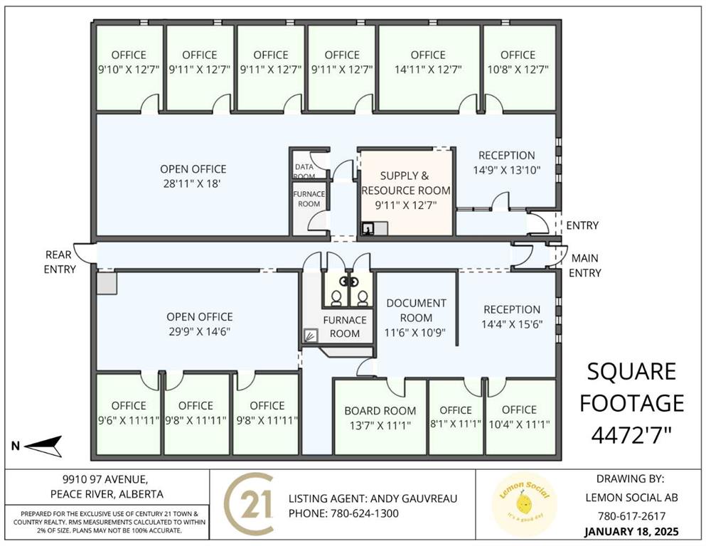4500 sq ft of office space now available divided between two potentially separate units - building is essentially two separate areas with a common hallway and bathrooms. You can have 2 - 2250 sq ft offices - you can rent one and use the other - Its zoned Mixed Commercial Residential so with a little bit of work and permits you could have two rental units as each side is separately metered. The west side has 3 offices, 3 meeting rooms, a lunch room, reception area and a common working area. The east side ...