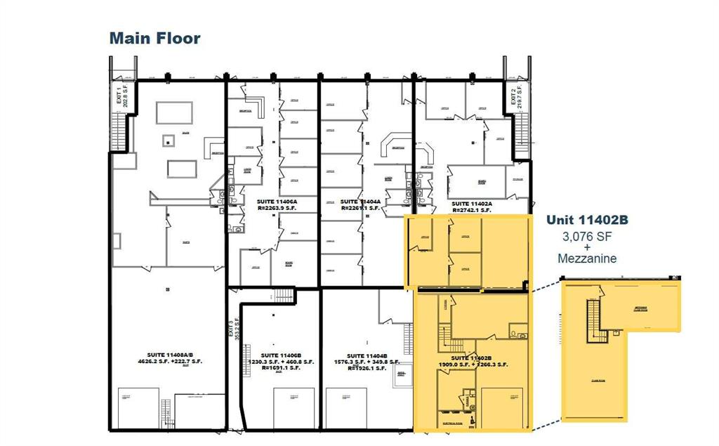 Commercial warehouse Conveniently Located! This versatile property offers 3,076 sq. ft. of main floor shop and show room/storage space with a 1267 sq ft mezzanine complete with private 2 pc washroom. Mezzanine is fully developed and could be converted to more offices if needed. Located on 100 Street, offering excellent exposure for your business. The shop is 31' long with a 14' x 14' overhead door. Base rent is $3,500.00 per month, with a triple net charge of $7.16 per sq. ft that includes all utilities...